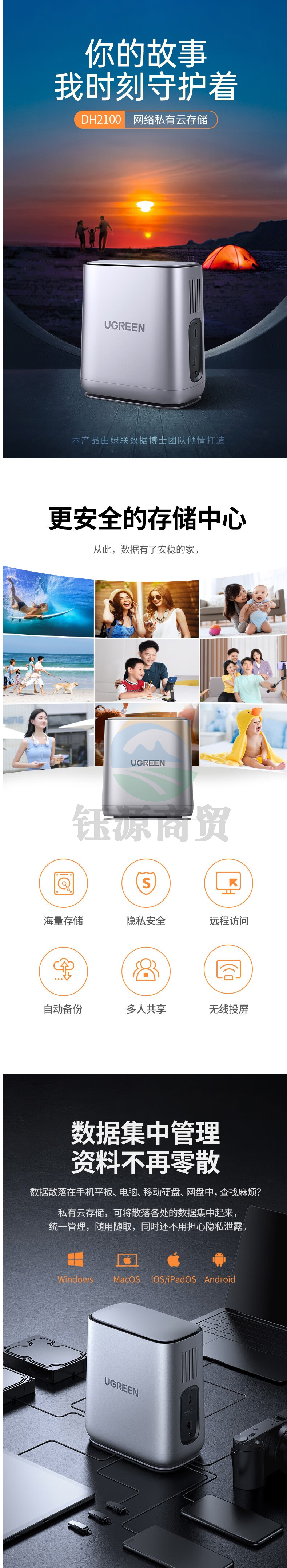 绿联(UGREEN)私有云DH2100 Nas网络云存储双盘位 支持3.5英寸/2.5英寸硬盘 个人云网盘 CM316(50120)