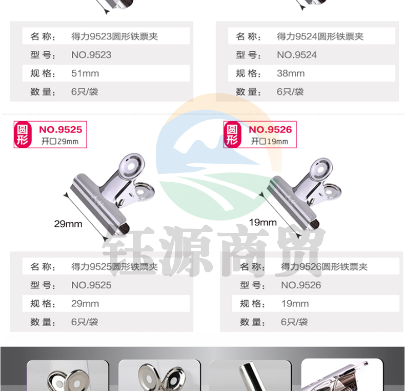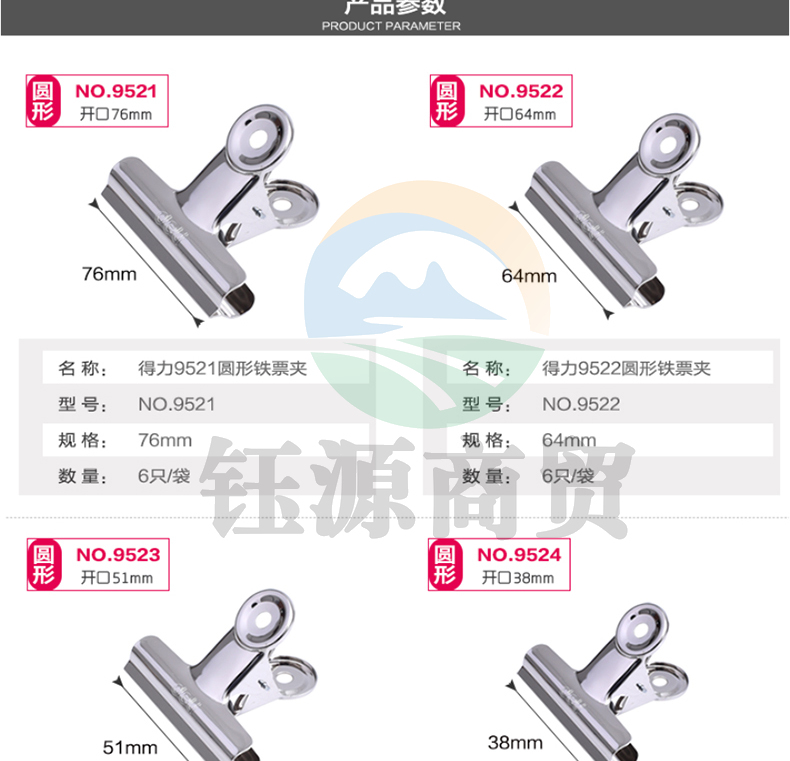 得力9531-1#山形铁票夹145mm袋装(4只/包)