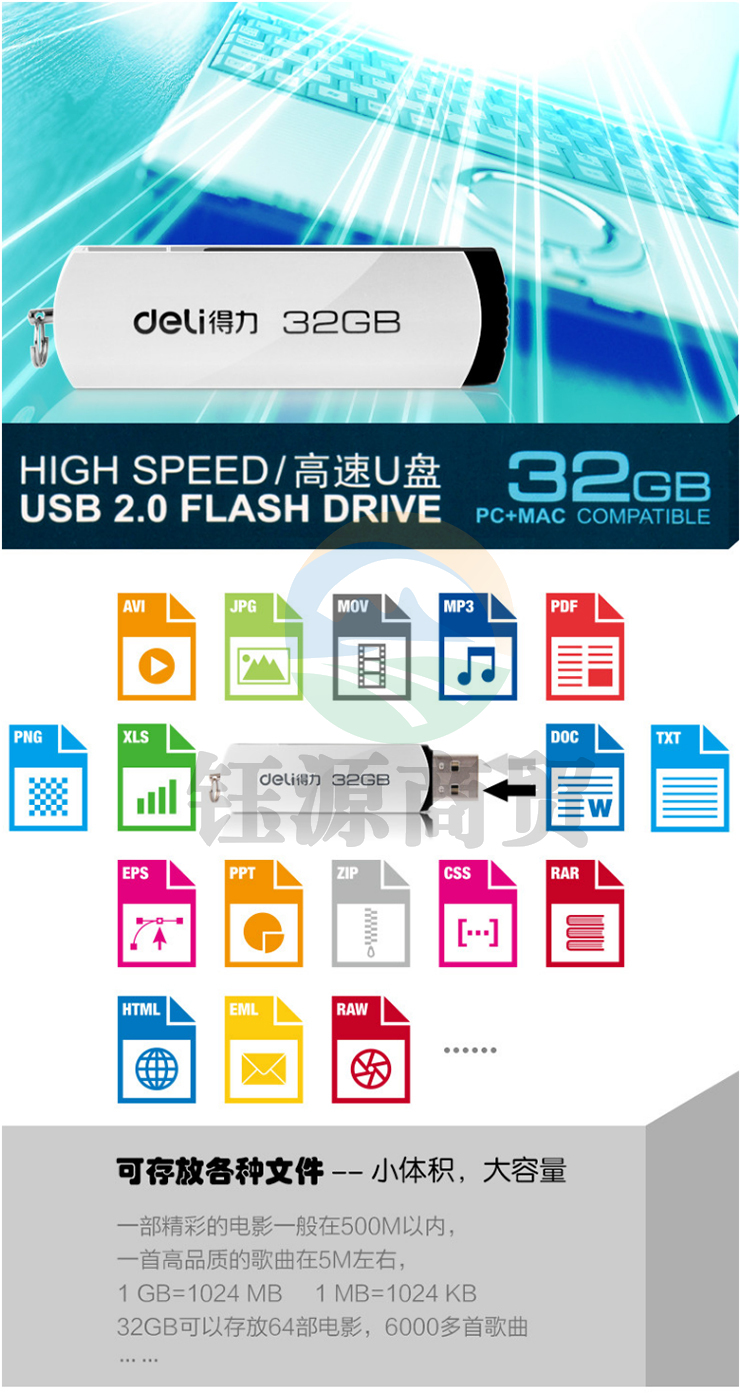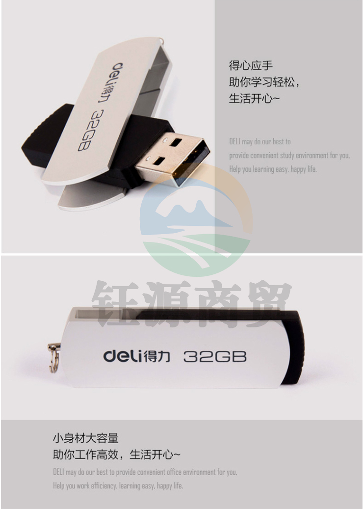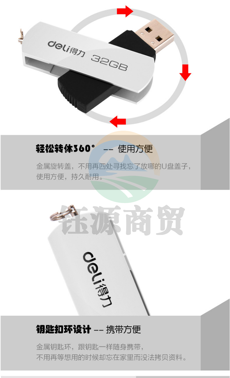 得力 3753 U盘优盘32G高速USB2.0金属外壳闪存快速存储大容量可旋转