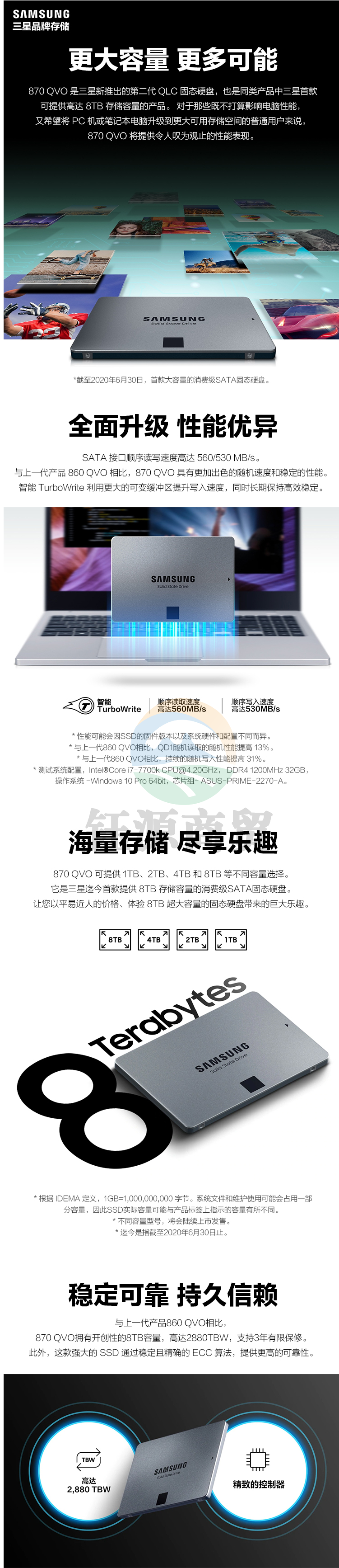 三星(SAMSUNG)4TB SSD固态硬盘 SATA3.0接口 870 QVO(MZ-77Q4T0B)