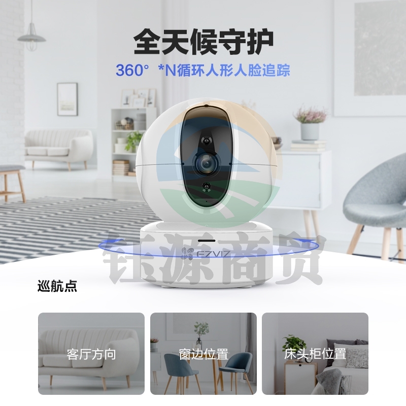 萤石(EZVIZ) C6C 3MP无极巡航版+16G视频监控专用卡 360度循环转动 智能家居
