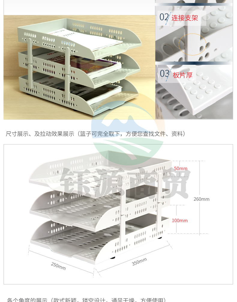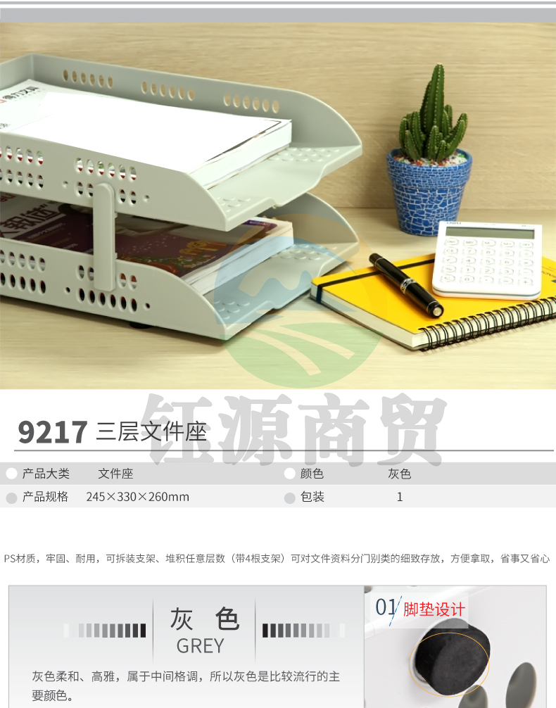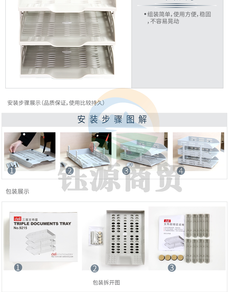 得力(deli)9217 三层文件盘文件框资料架文件架办公用品多层加厚文件座简易桌上资料夹 黑色/灰色 WLSZ01312218558986