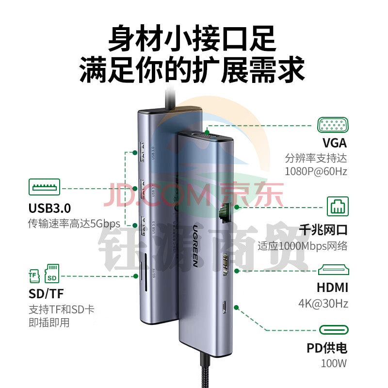 绿联Type-C扩展坞USB-C转HDMI雷电3/4拓展坞转换分线器网口转接头通用苹果电脑MacBook Air华为笔记本ipadpro 15600