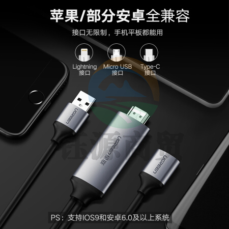 绿联(UGREEN) 绿联手机转HDMI视频同屏转换器适用iPhone苹果iPad平板安卓Type- 太空灰 50291