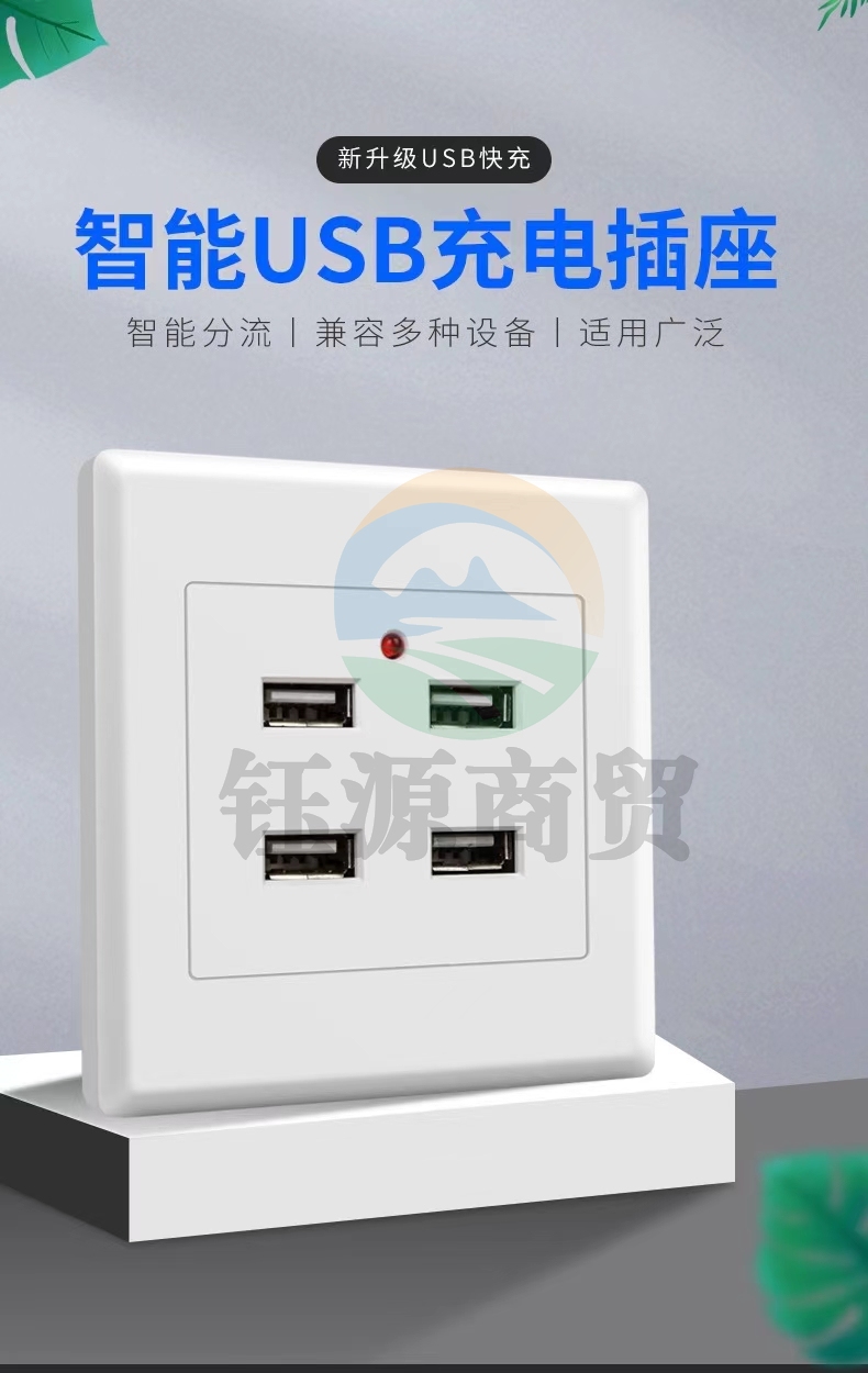 津峰 USB开关插座 86型暗装家用白色 USB四孔插座