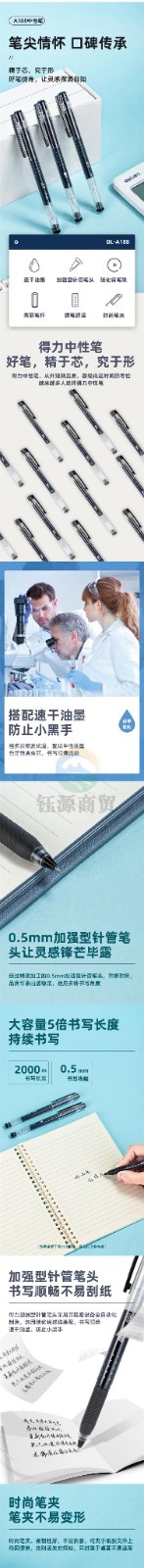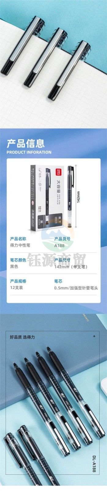 得力A188速干中性笔0.5mm加强型针管(黑)(12支/盒) WLSZ01020945412884