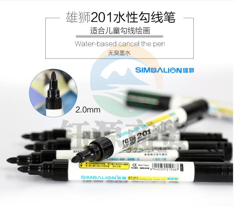 雄狮201 黑色白板笔 水性勾线笔粗头记号笔 无味水彩笔可加墨水