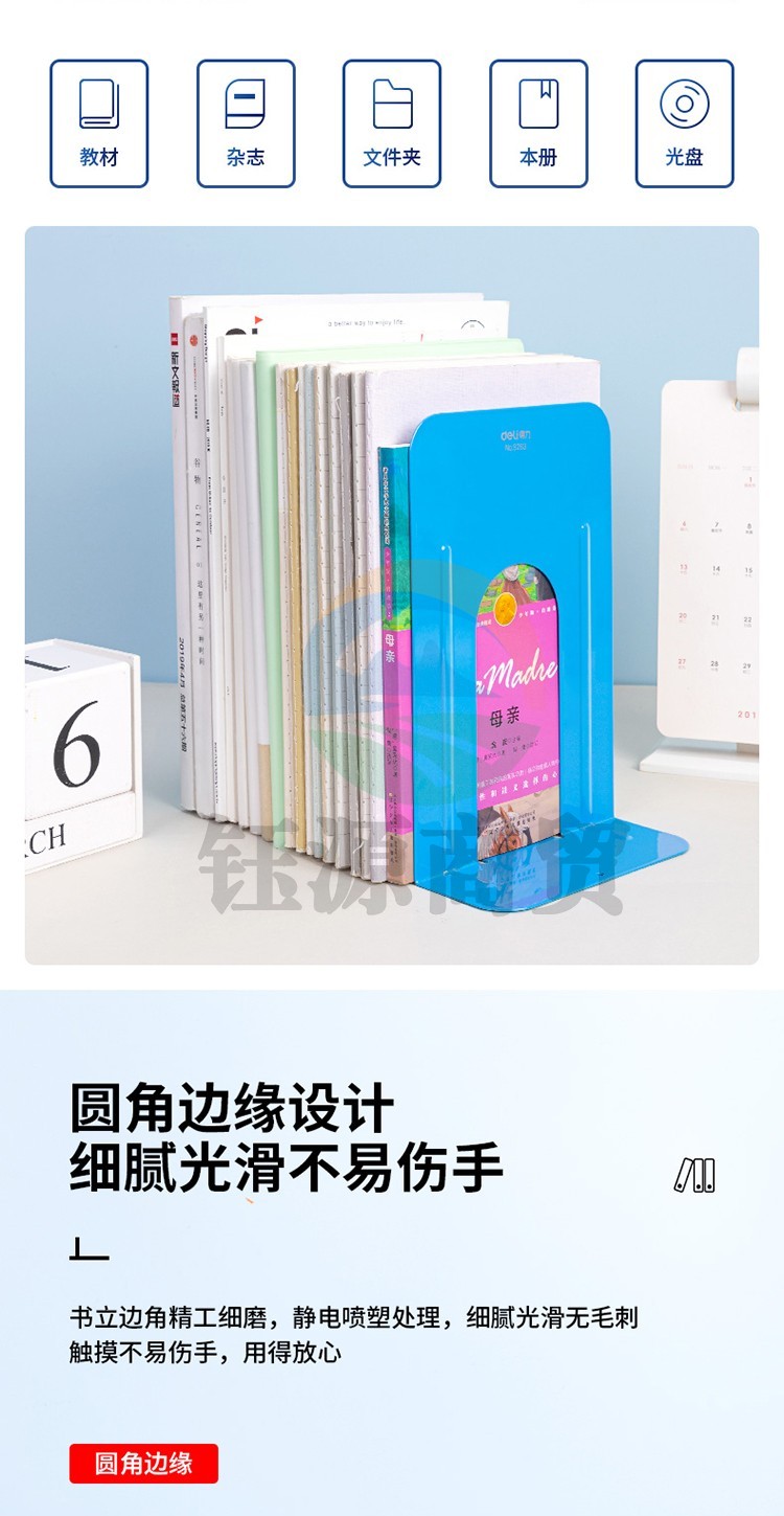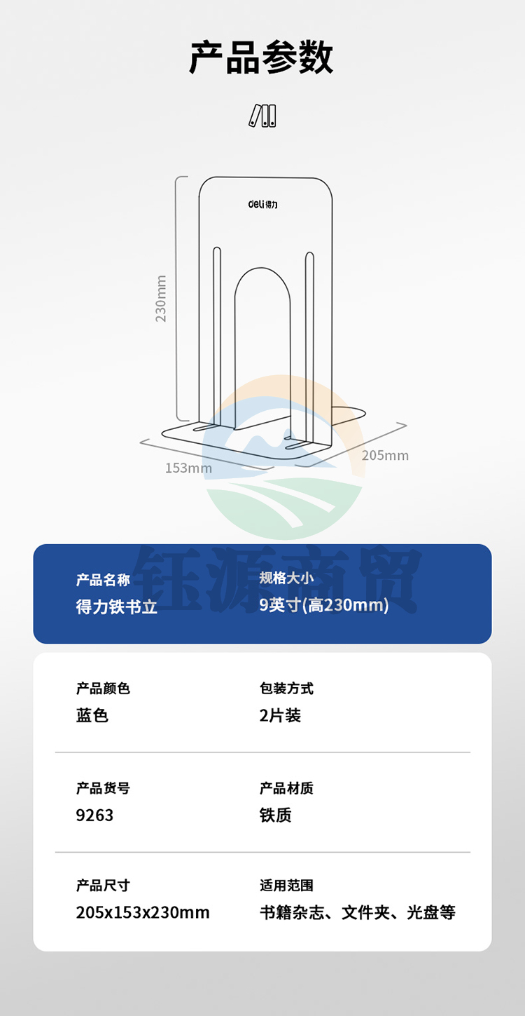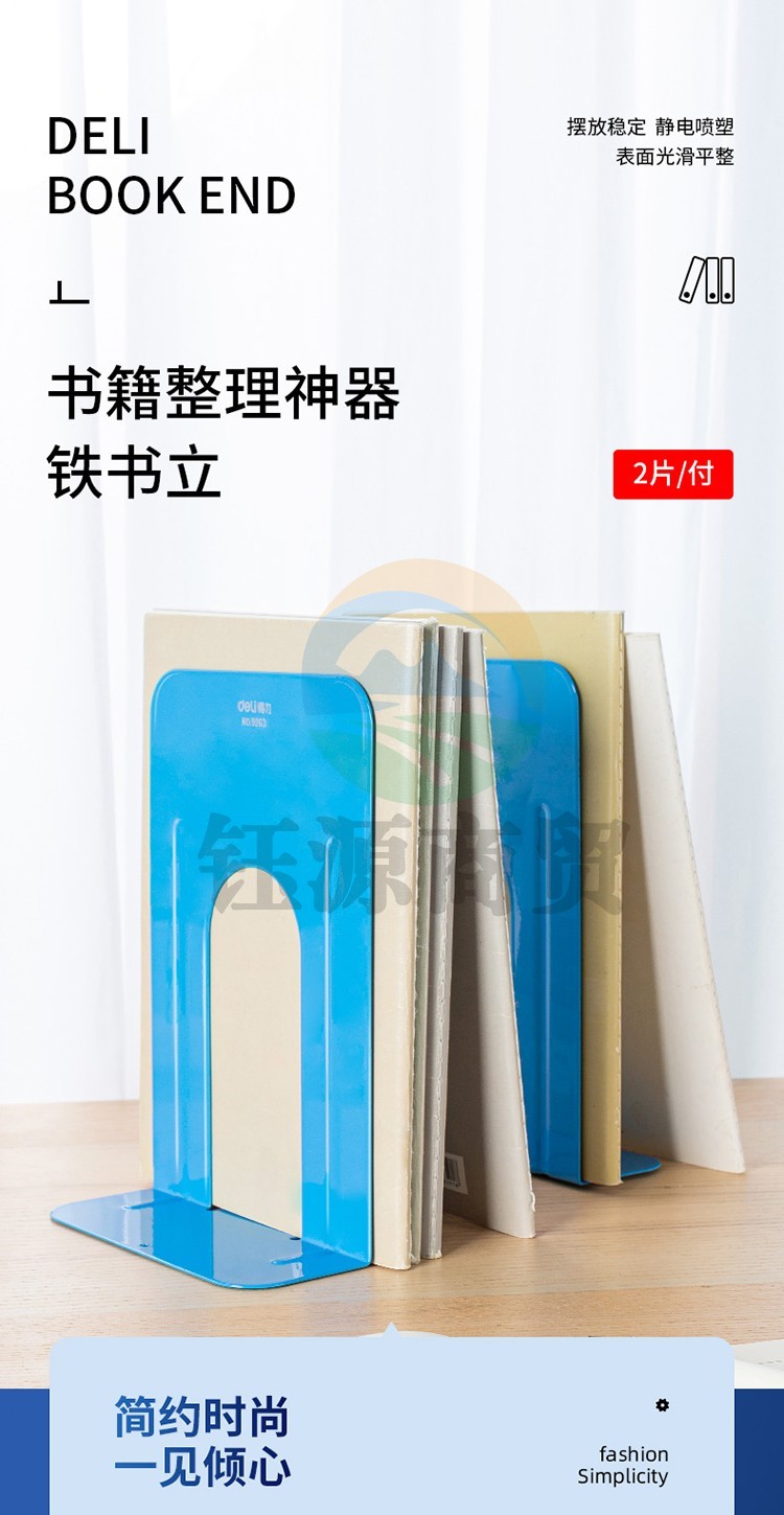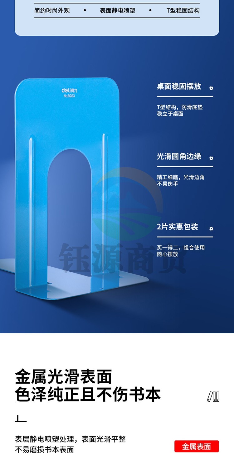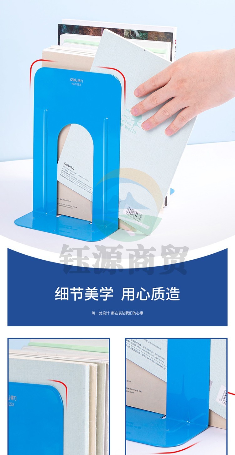 得力 9263 铁书立(蓝)(2片/付) WLSZ01072151258858