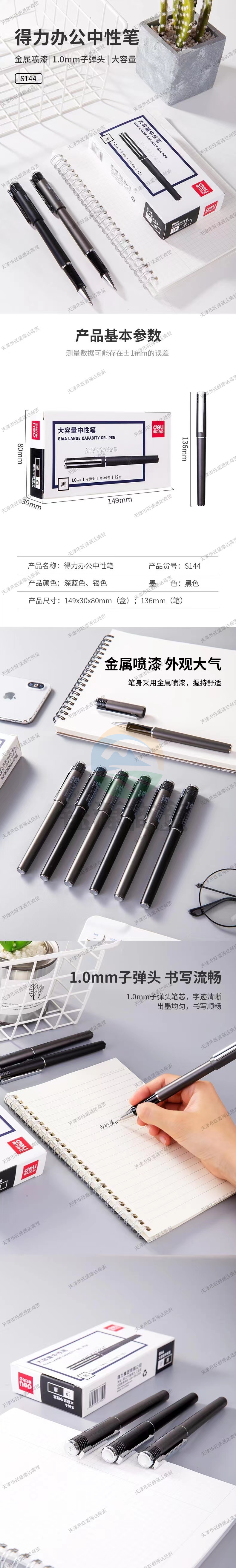 得力S144办公大容量中性笔1.0mm子弹头(黑)