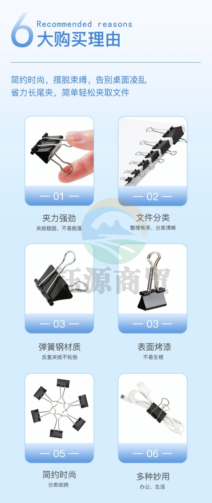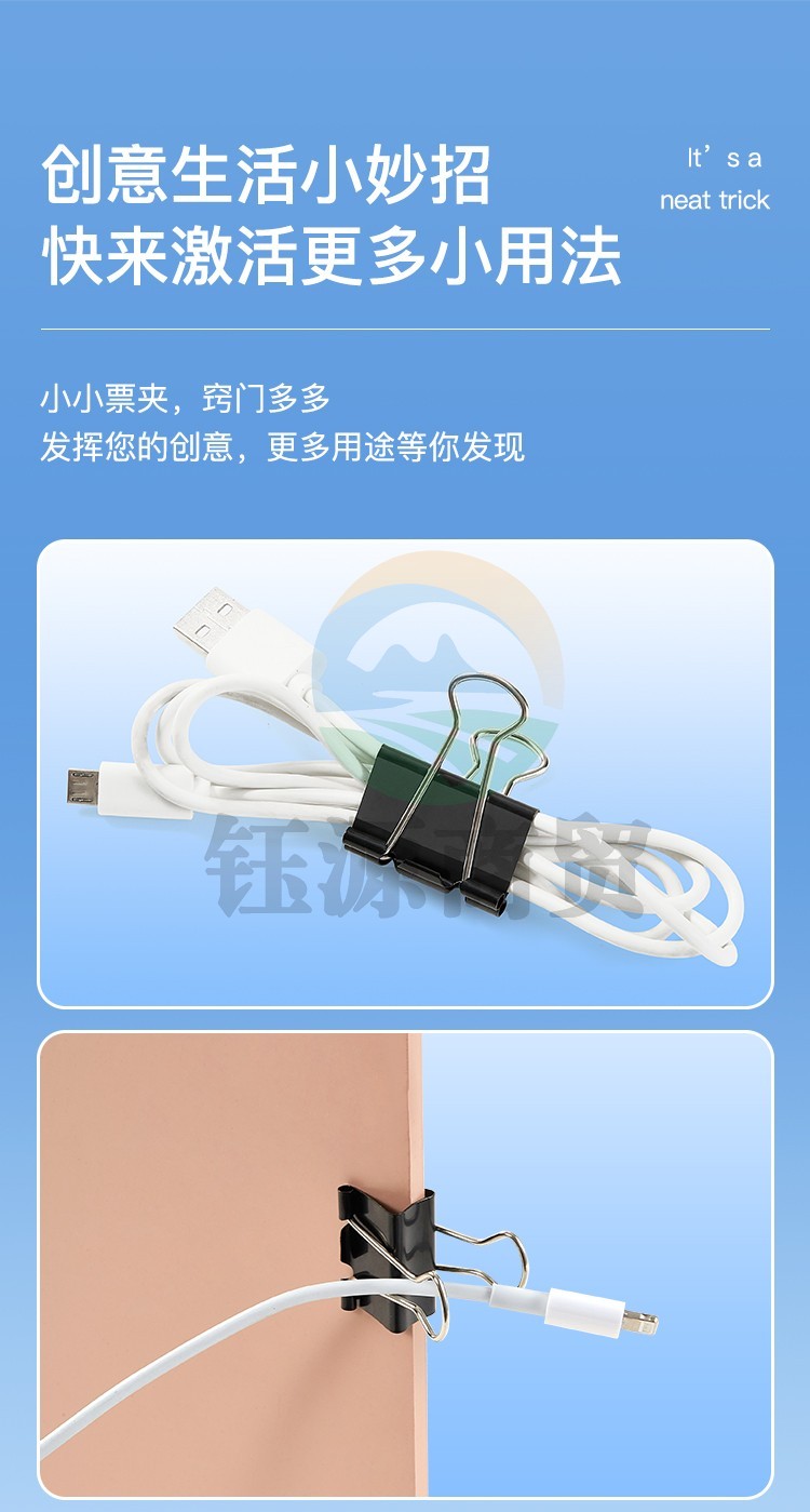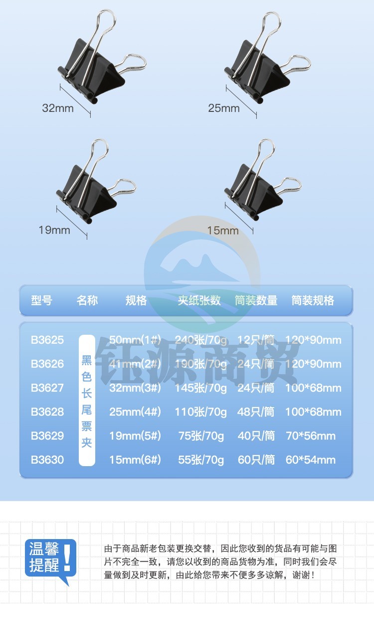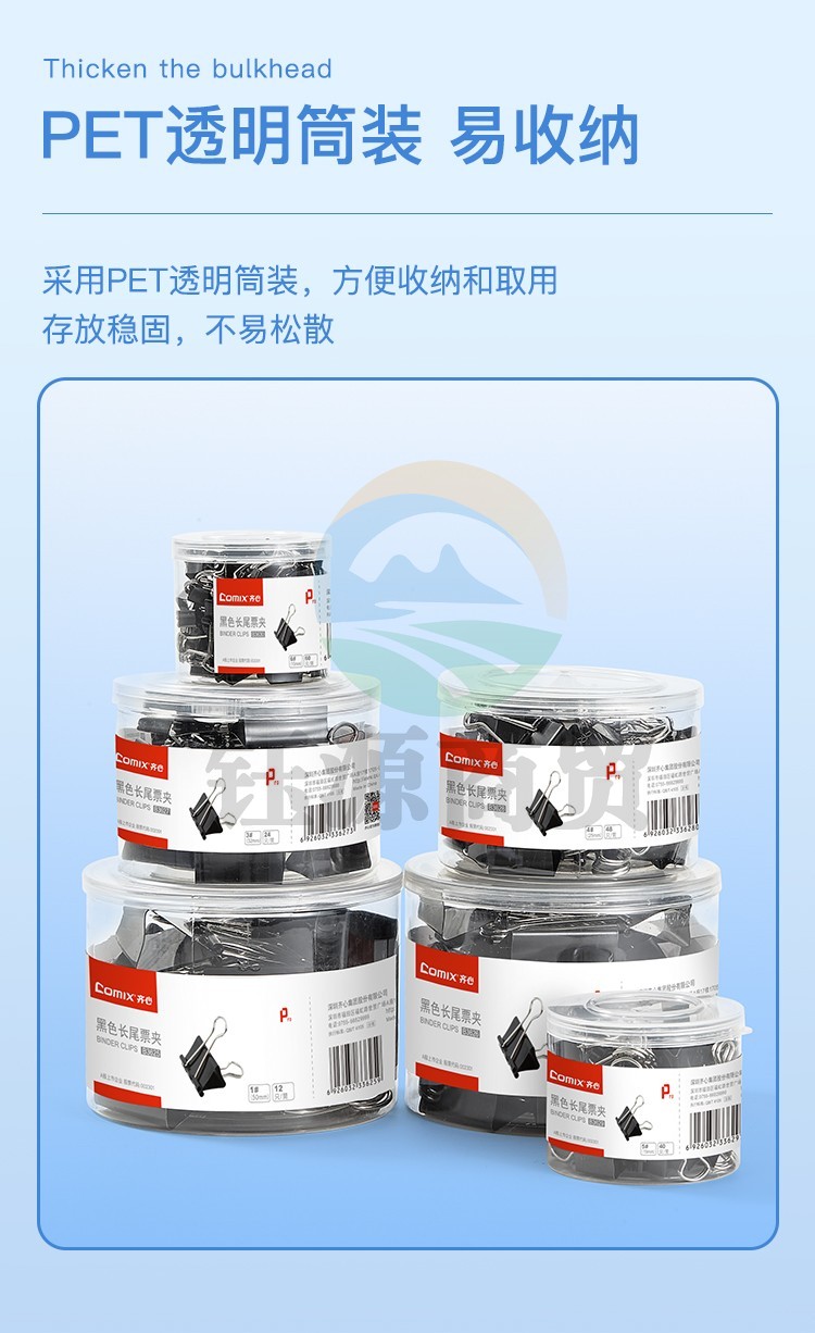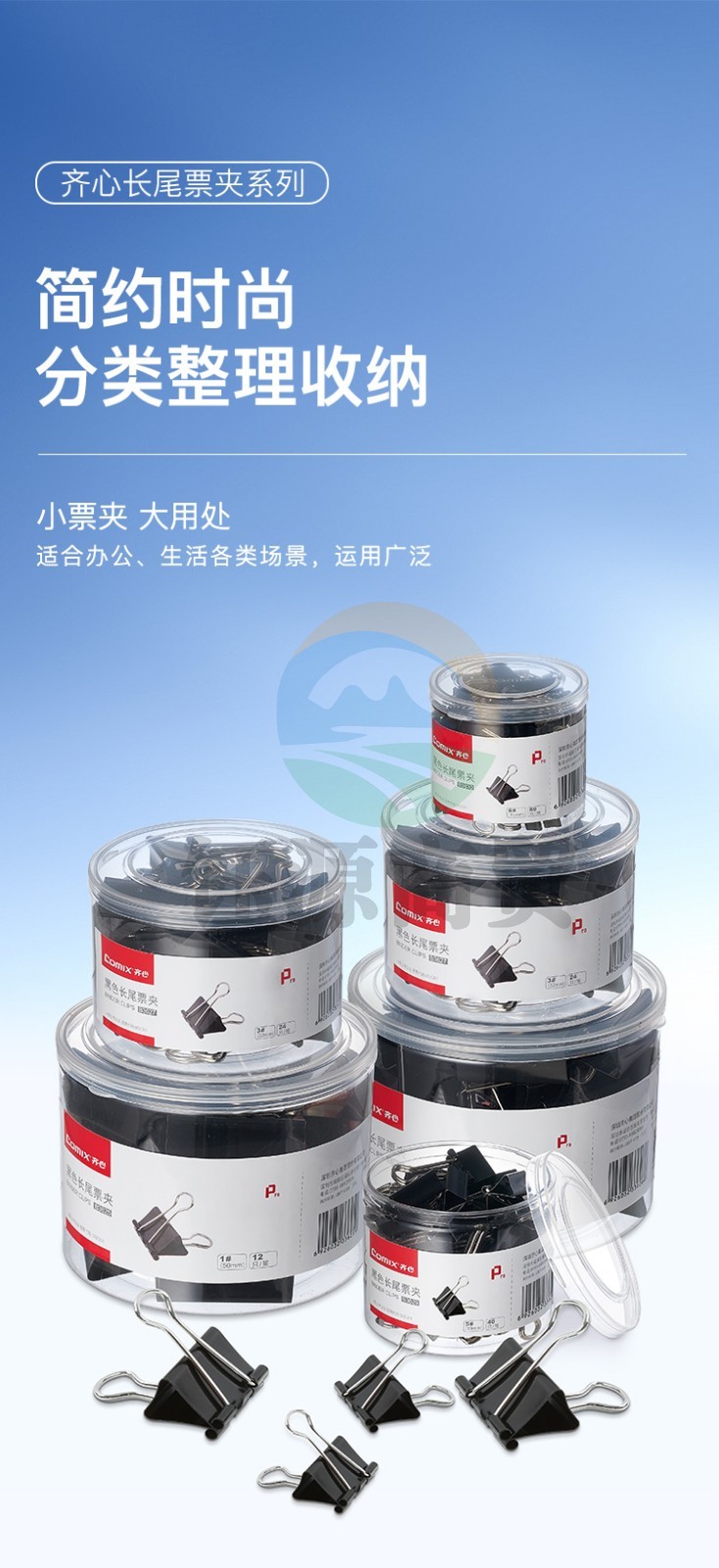 齐心 B2368黑色长尾票夹 4# 25mm 48只/筒