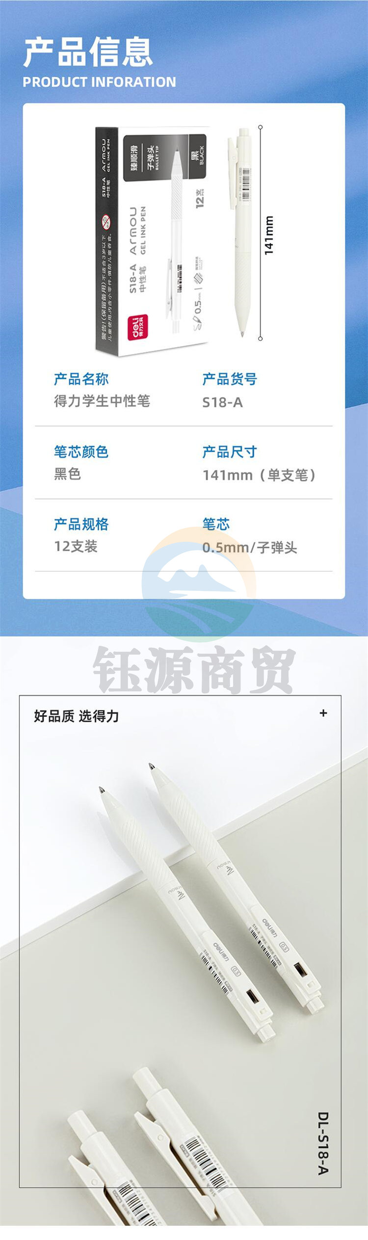 得力S18-A中性笔0.5mm子弹头(臻顺滑)(黑)(12支/盒) WLSZ01020945443848