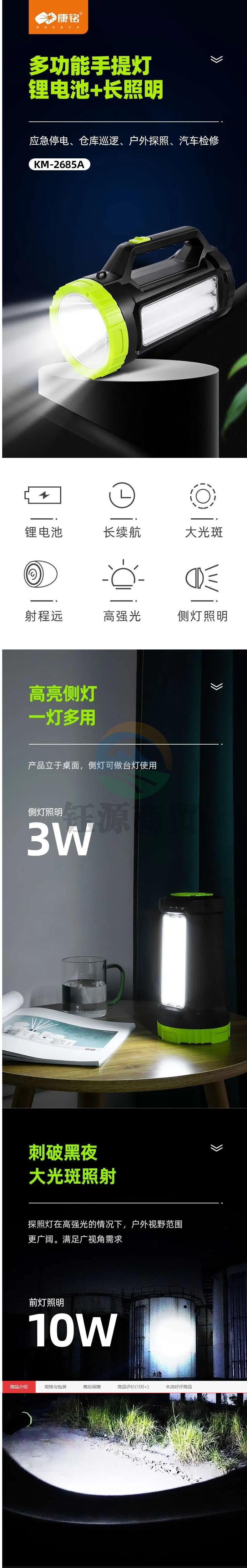 康铭手提灯探照灯强光远射大功率手电筒充电矿灯LED照明灯电瓶灯户外野营灯帐篷灯家用应急灯安防巡逻灯 2685A