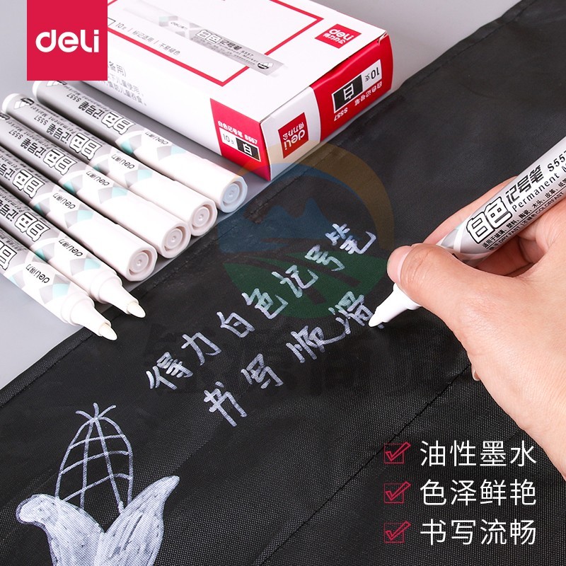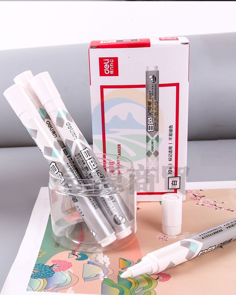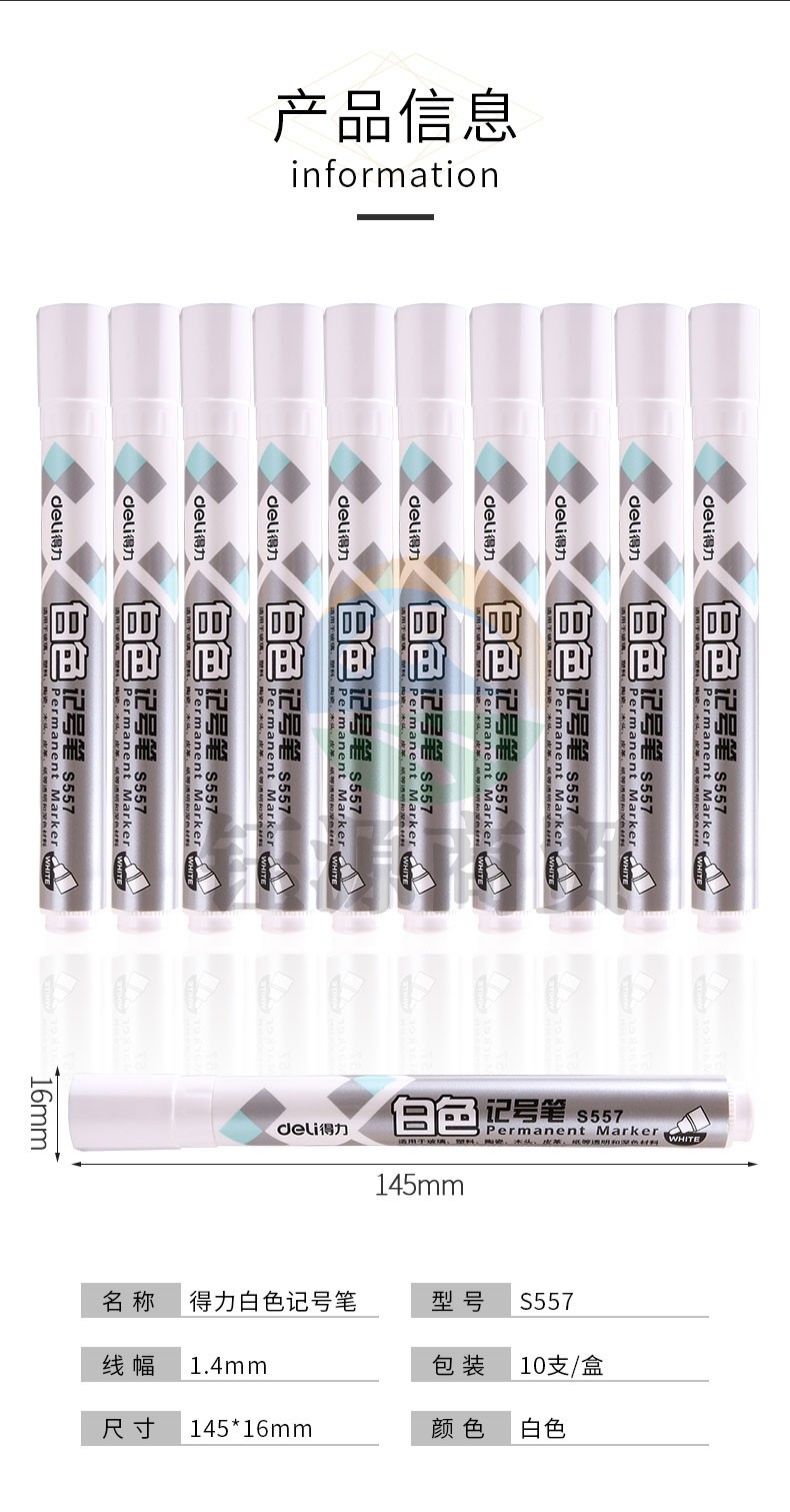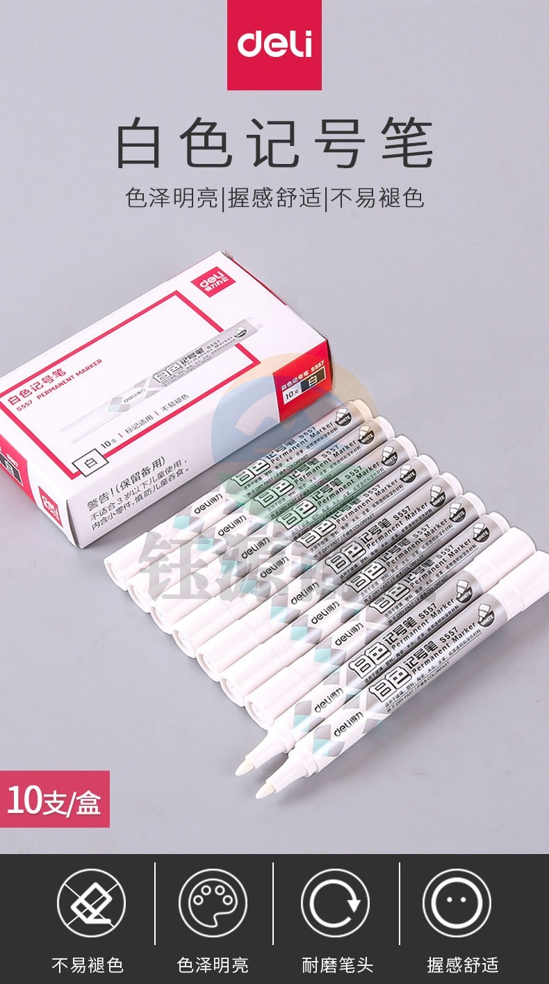 得力(deli) S557 粗头白色记号笔 白色 大容量 10支/盒 WLSZ01142235464085