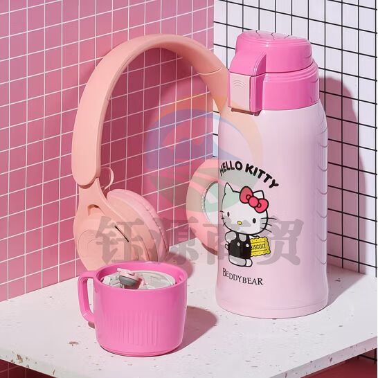 杯具熊(BEDDYBEAR)儿童保温杯带吸管316不锈钢双盖两用大容量儿童水杯壶600mlKT猫
