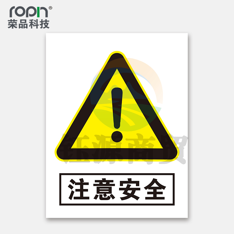 荣品 PVC当心安全国标警示标识牌验厂安检检查警示牌温馨提示标贴自带背胶订做定制 注意安全 220×300mm