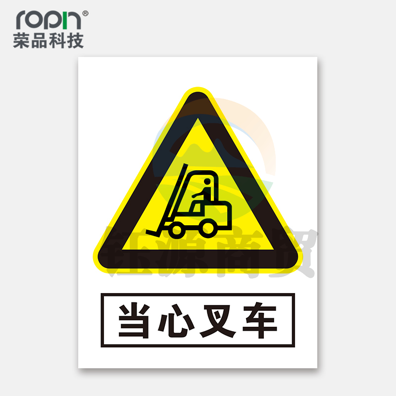 荣品 PVC当心安全国标警示标识牌验厂安检检查警示牌温馨提示标贴自带背胶订做定制 当心叉车 220×300mm
