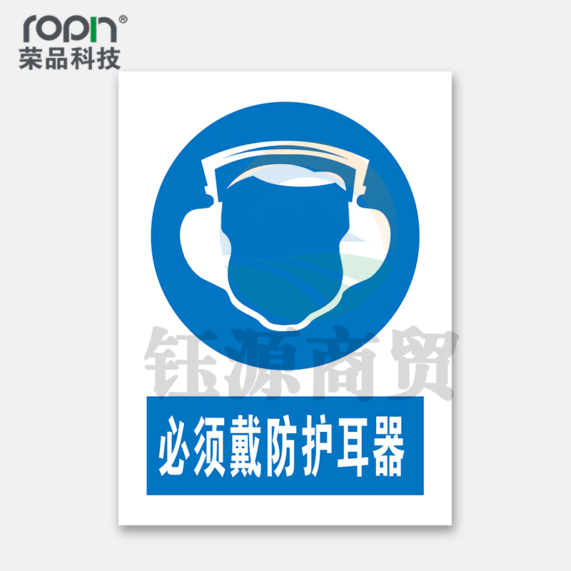 荣品 PVC国标安全警示标识牌验厂安检检查警示牌警告提示牌温馨提示标贴定制订做 必须戴防护耳器 220×300mm