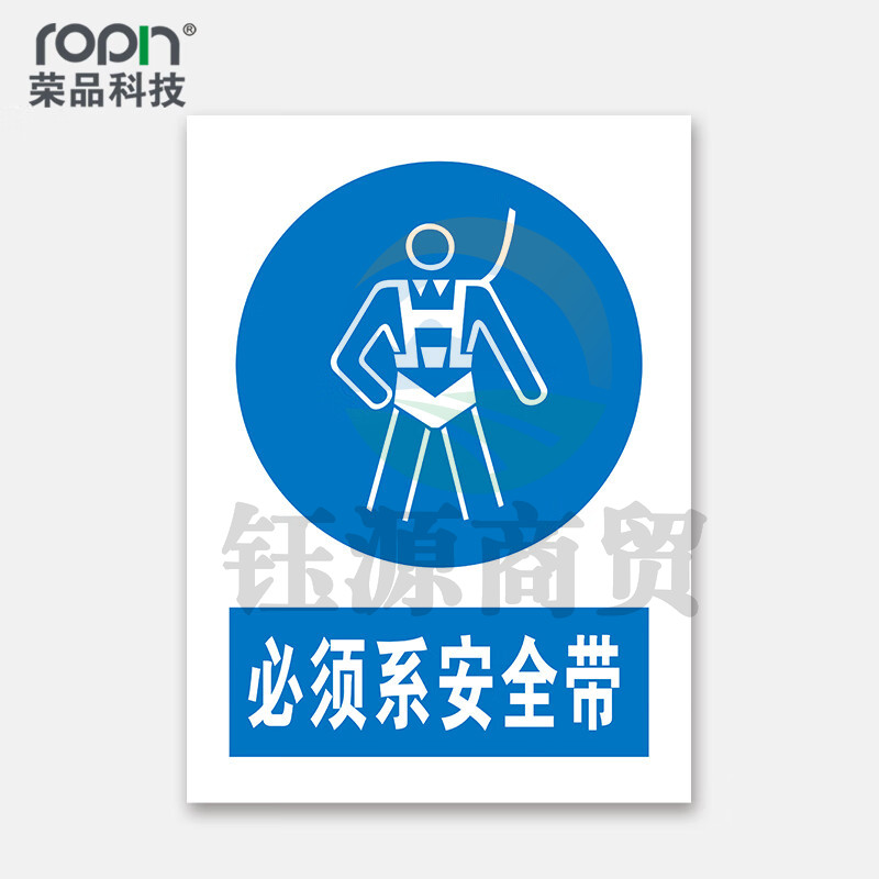 荣品 PVC国标安全警示标识牌验厂安检检查警示牌警告提示牌温馨提示标贴定制订做 必须系安全带 220×300mm