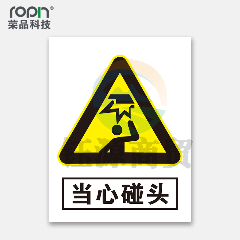 荣品 PVC当心安全国标警示标识牌验厂安检检查警示牌温馨提示标贴自带背胶订做定制 当心碰头 300×390mm