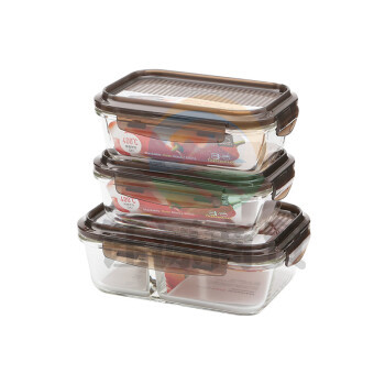 乐扣乐扣(LOCK&LOCK)LLG991CS101 玻璃饭盒分隔微波炉用便携耐热上班族便当盒带饭保鲜盒 (礼盒三件套)
