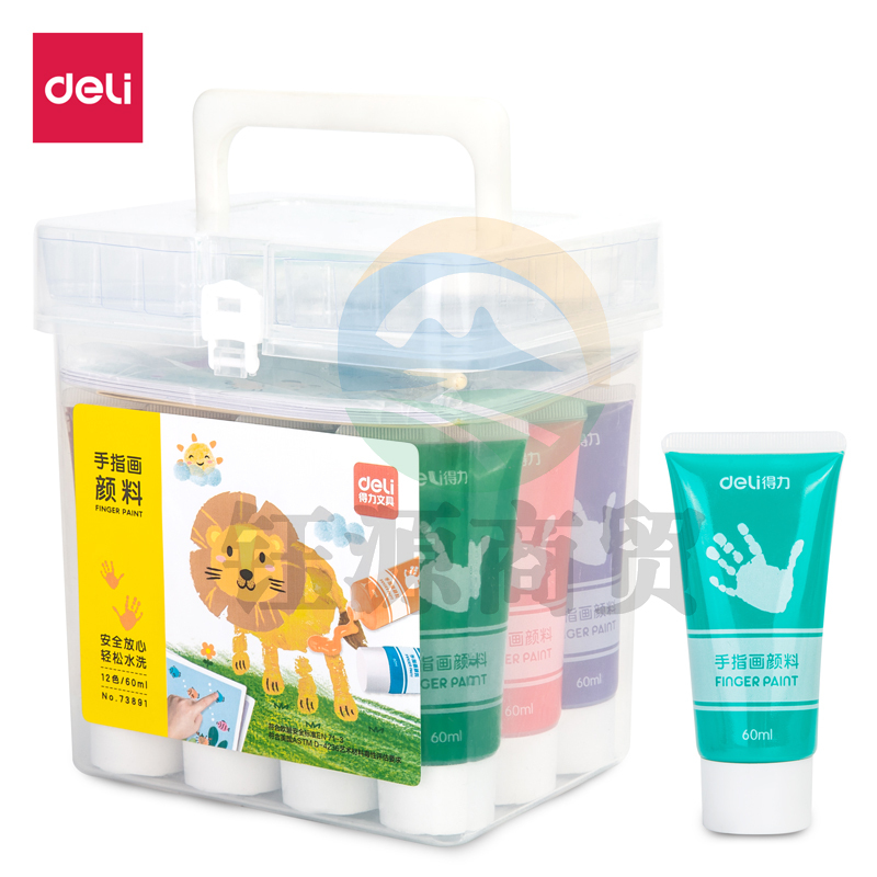 得力73891_PP桶手指画12色60ml(混)(桶)