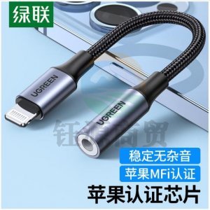 绿联30756 MFi认证 苹果耳机手机转接头 音频转换器Lightning转3.5mm转接线