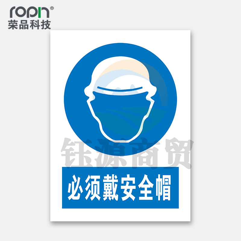 荣品 PVC国标安全警示标识牌验厂安检检查警示牌警告提示牌温馨提示标贴定制订做 必须戴安全帽 400×550mm