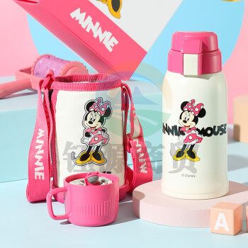 杯具熊(BEDDYBEAR)儿童保温杯带吸管316不锈钢双盖两用大容量儿童水杯600ml复古米妮