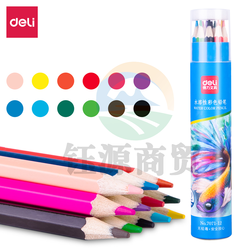 得力7071-12_12色六角杆水溶性彩铅(混)(12色/筒)
