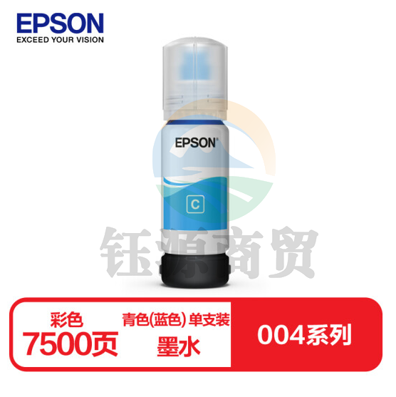 爱普生004系列T00U2原装墨水青色(蓝色)单只装(适用L1258/L311X/L315X/L316X/L325X/L326X/L355X系列等)