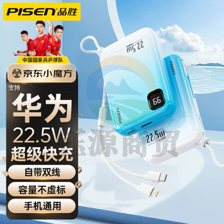 品胜严选 充电宝自带线快充移动电源20000毫安时大容量迷你便携小巧适用华为苹果13小米oppo手机通用 蓝色