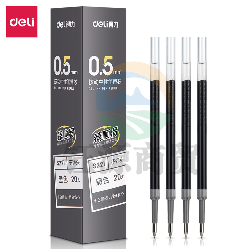 得力S221按动中性笔替芯0.5mm子弹头(黑色)(支)