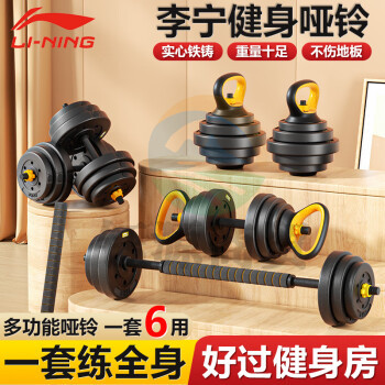 李宁(LI-NING)LN11252哑铃男女健身杠铃可调节拆卸家用运动环保器材壶铃组合训练全套装