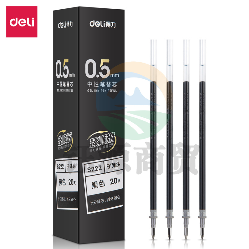 得力S222中性笔替芯0.5mm子弹头(黑)(支)