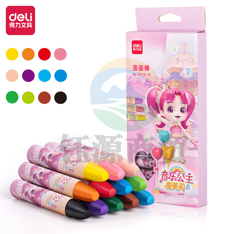 得力72114-12_彩盒装音乐公主爱美莉子弹头12色油画棒(混)(12支/盒)