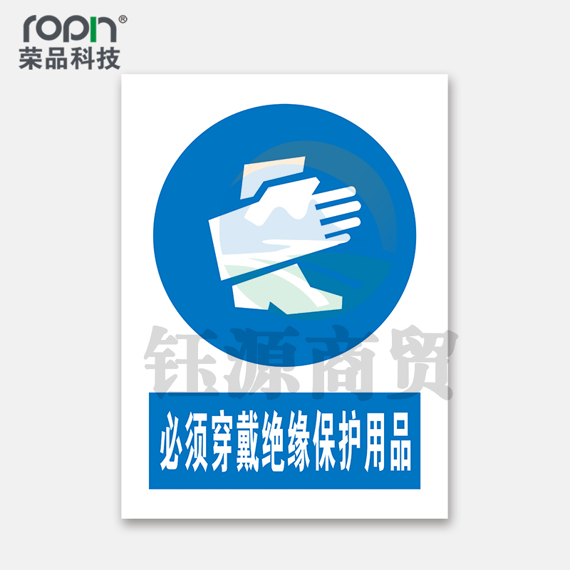 荣品 PVC国标安全警示标识牌验厂安检检查警示牌温馨提示标贴定制订做 必须穿戴绝缘保护用品 400×550mm