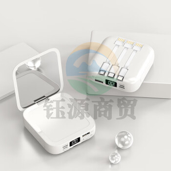 小米(MI)适用 小型轻薄迷你充电宝20000毫安 便携大容量快充带线 白化妆镜充电宝【数显+3线合一】