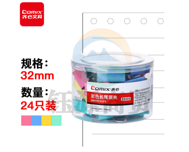 齐心(Comix)长尾夹票夹 彩色金属 3#32mm 24只/筒EB404