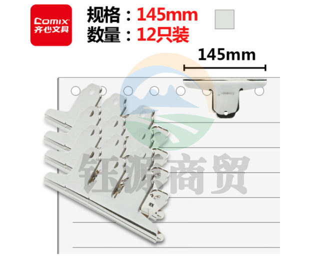 齐心(COMIX) 145mm大号山形铁票夹B3617画板夹 财务票据夹 12只装