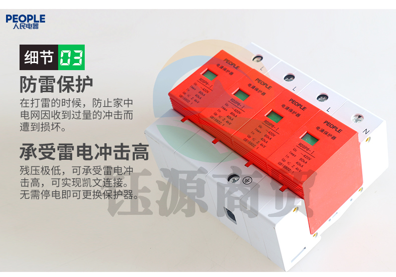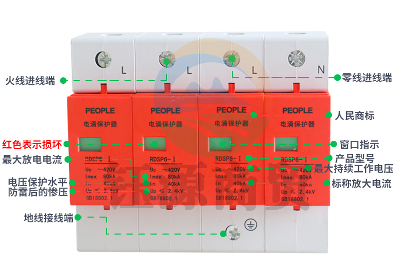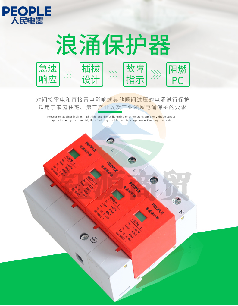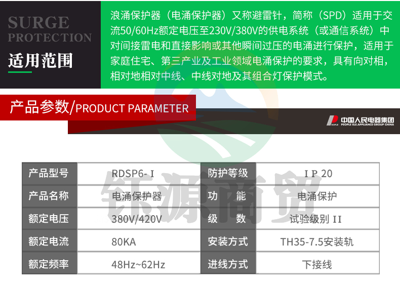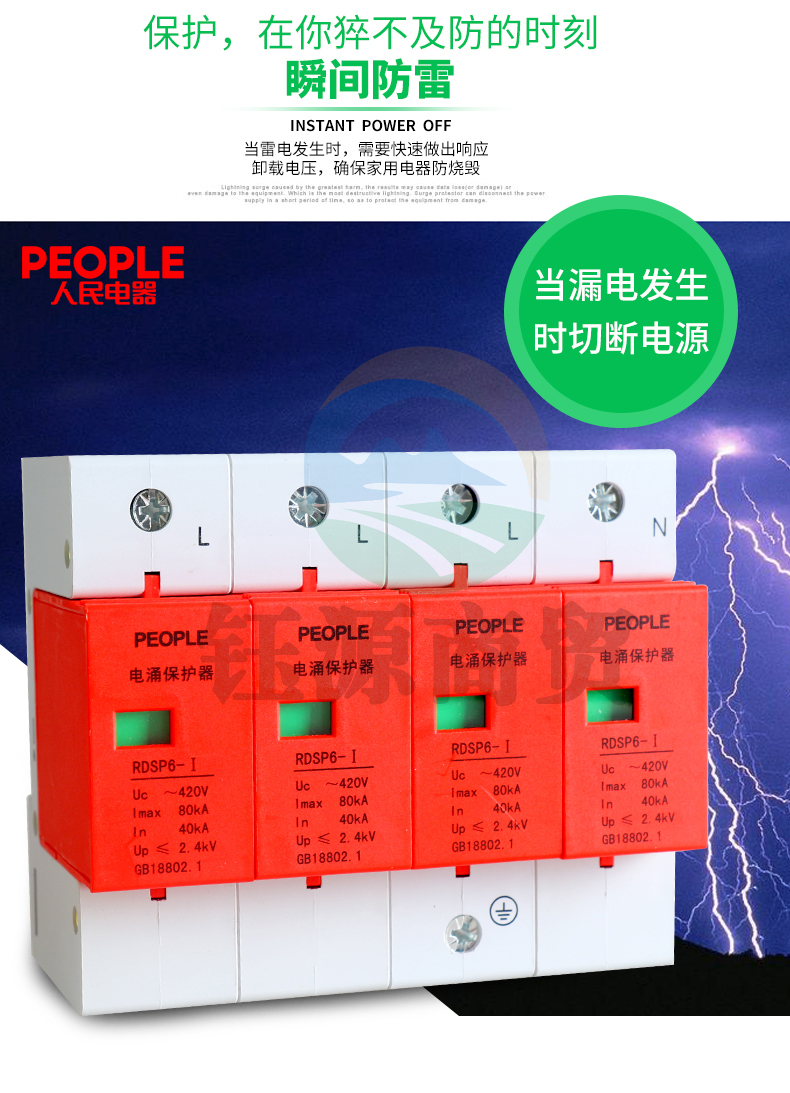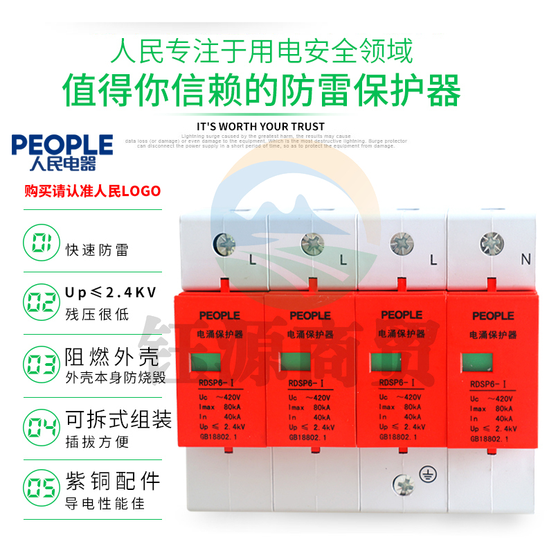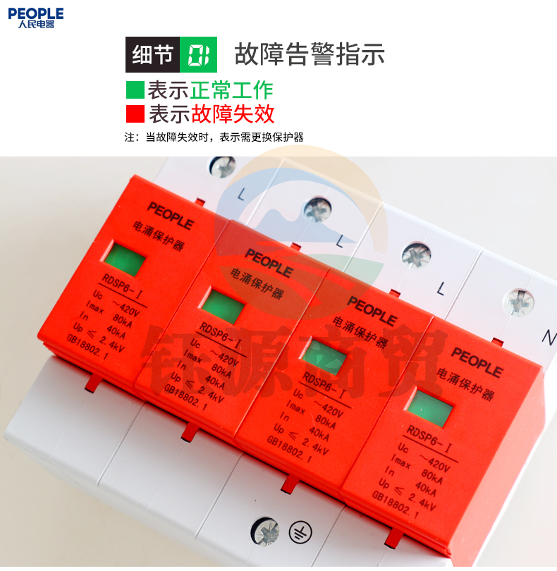 人民电器 工业用三相浪涌保护器4P 防雷器 电涌避雷器 RDSP6-80KA(偏远区域下单请电话咨询)