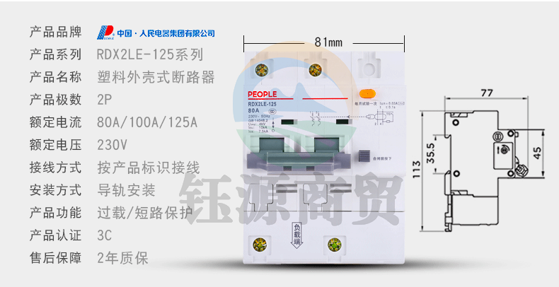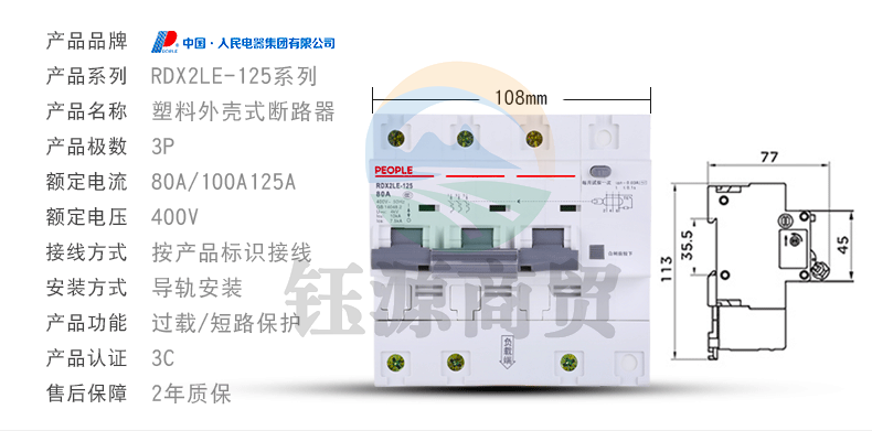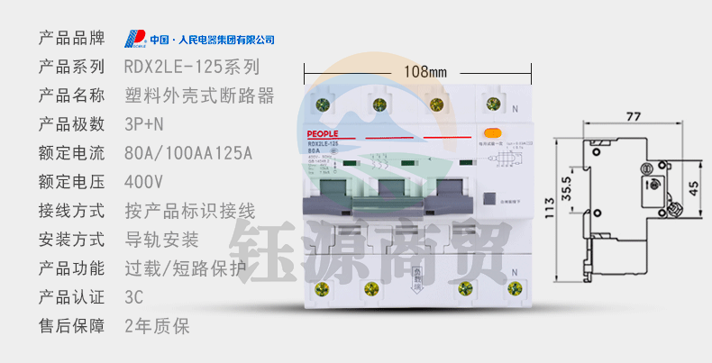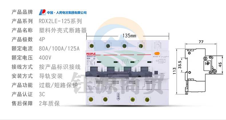 人民电器 RDX2LE-4P100A4L 拼装 漏电断路器