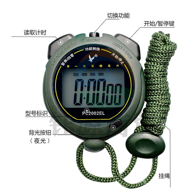 天福秒表跑步运动训练裁判表电子闹钟防水夜光器单排大计时屏显示PC2002EL