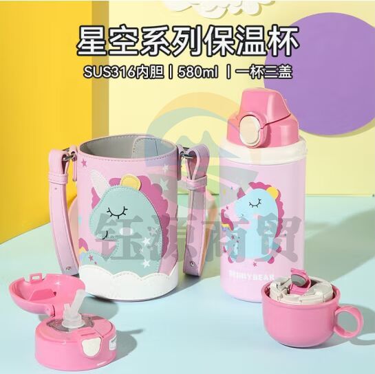 杯具熊(BEDDYBEAR) 儿童保温杯大容量男女宝宝316不锈钢吸管水杯一杯三盖直饮便携 星空独角兽