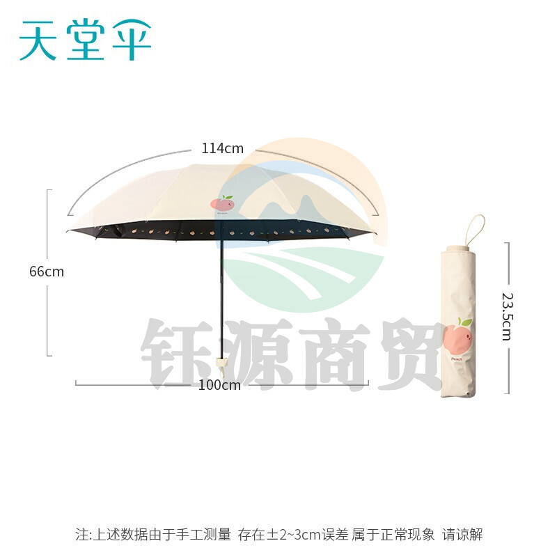 天堂 遮阳伞黑胶防晒伞蜜桃图案防紫外线太阳伞三折晴雨伞 米黄