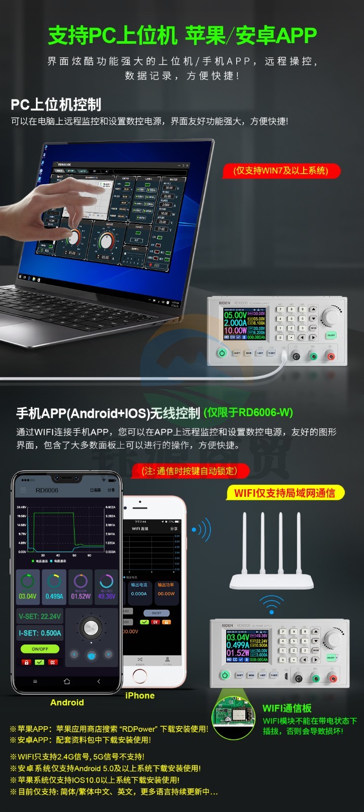 睿登rd6006W带WIFI模块数控开关可调电源直流稳压电源适配器降压模块