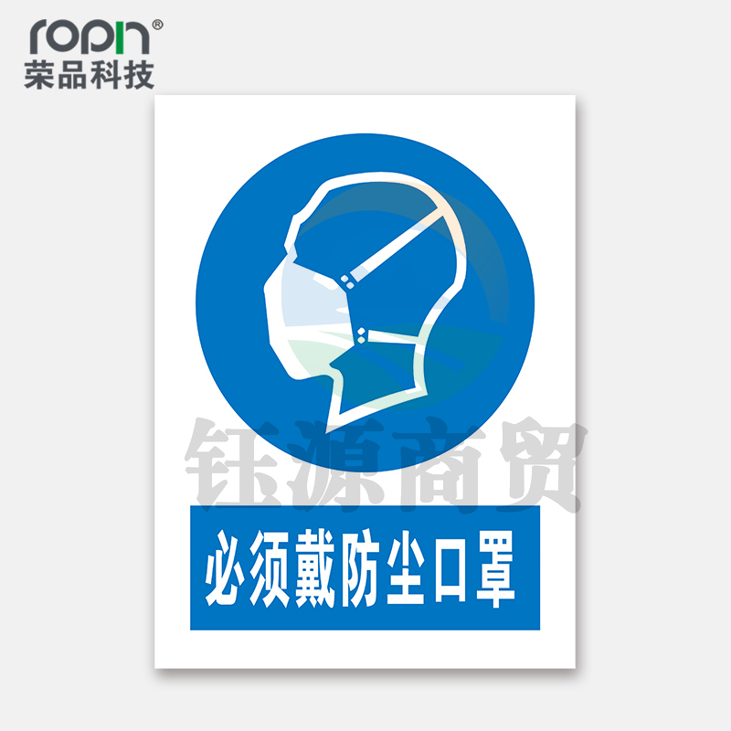 荣品 PVC国标安全警示标识牌验厂安检检查警示牌警告提示牌温馨提示标贴定制订做 必须戴防尘口罩 300×390mm