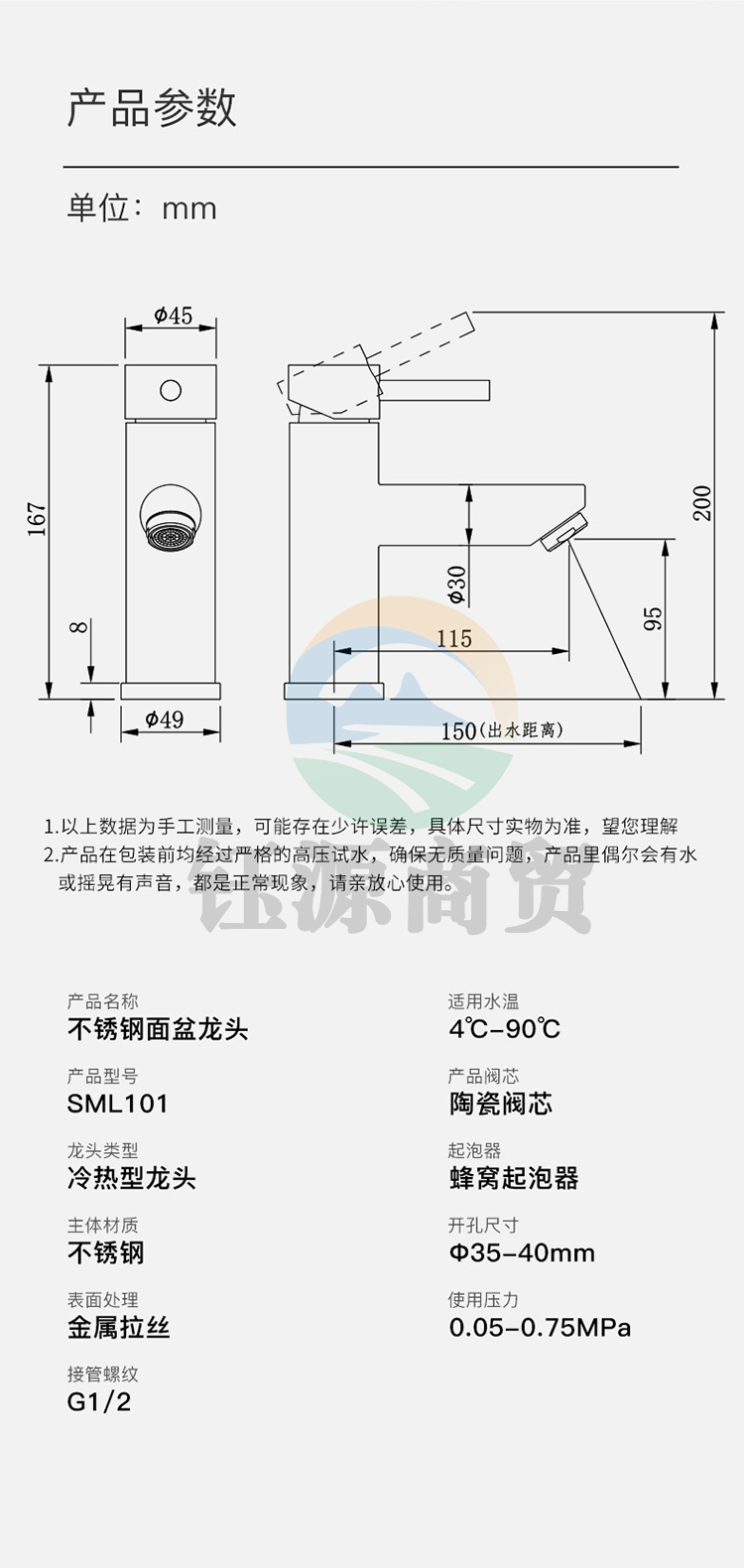 大自然(SWEGAL)不锈钢环保浴室冷热水龙头健康卫浴龙头 面盆龙头 洗脸盆龙头 SML101