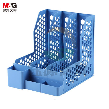 晨光(M&G)ADM929R9 三联带笔筒收纳桌面文件框 多功能镂空文件栏 蓝色