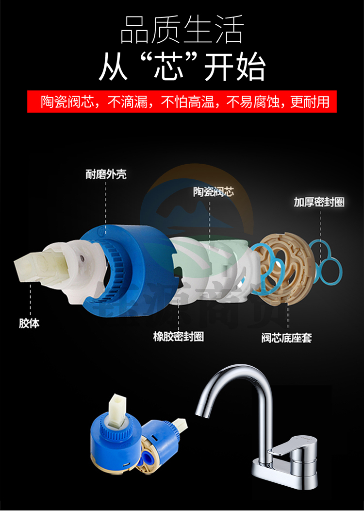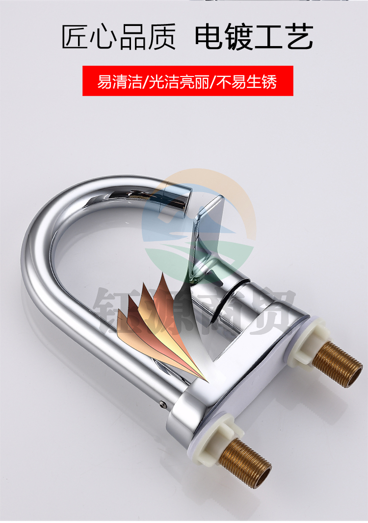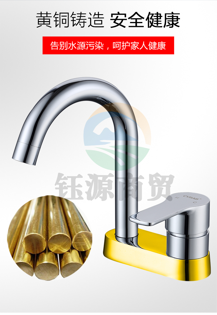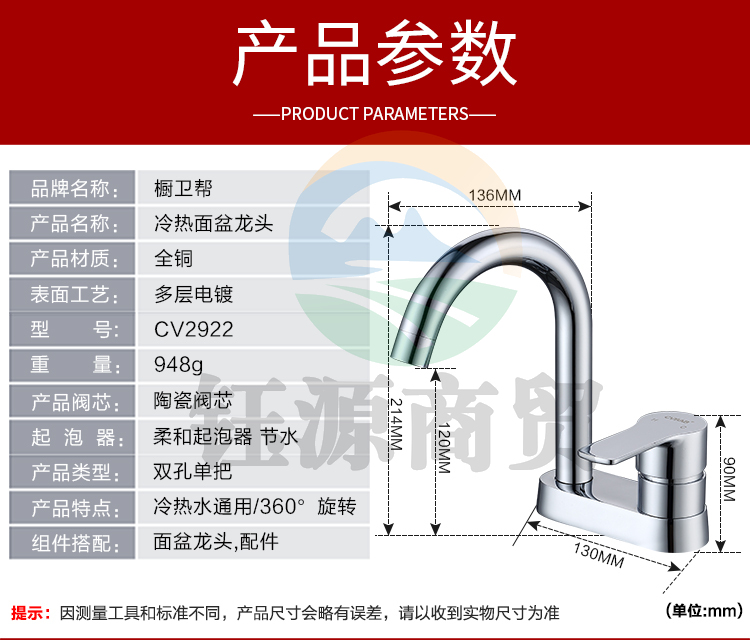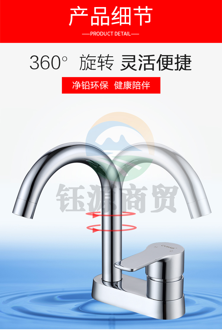 橱卫帮(CVBAB)全铜主体双孔面盆水龙头 360°旋转洗脸池台盆冷热水龙头 CV2922