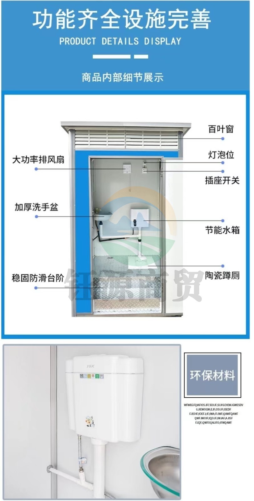 简易移动厕所 1.1*1.1*2.35 蓝白直排 平台 台阶两种款式可订